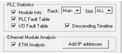 打開PacsAnalyzer軟件,輸入以太網(wǎng)模塊的IP地址,配置故障表輸出的路徑(.txt文件)