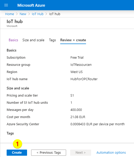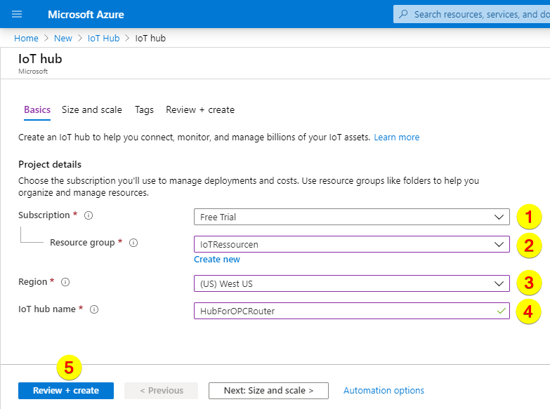 之后點(diǎn)擊“Review + create”(5):