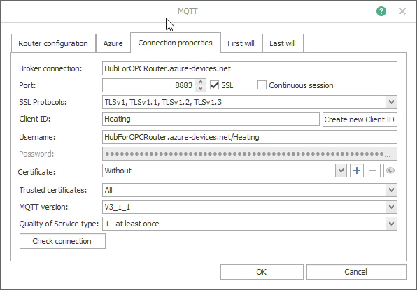 IoT Hub是通往 Microsoft Azure 門戶的數(shù)據(jù)網(wǎng)關(guān)。可以通過(guò) MQTT 與 IoT Hub 交換數(shù)據(jù)。我們?cè)诜植浇坛讨姓故玖?IoT Hub 的 MQTT 連接,其中 OPC Router作為 MQTT 客戶端。