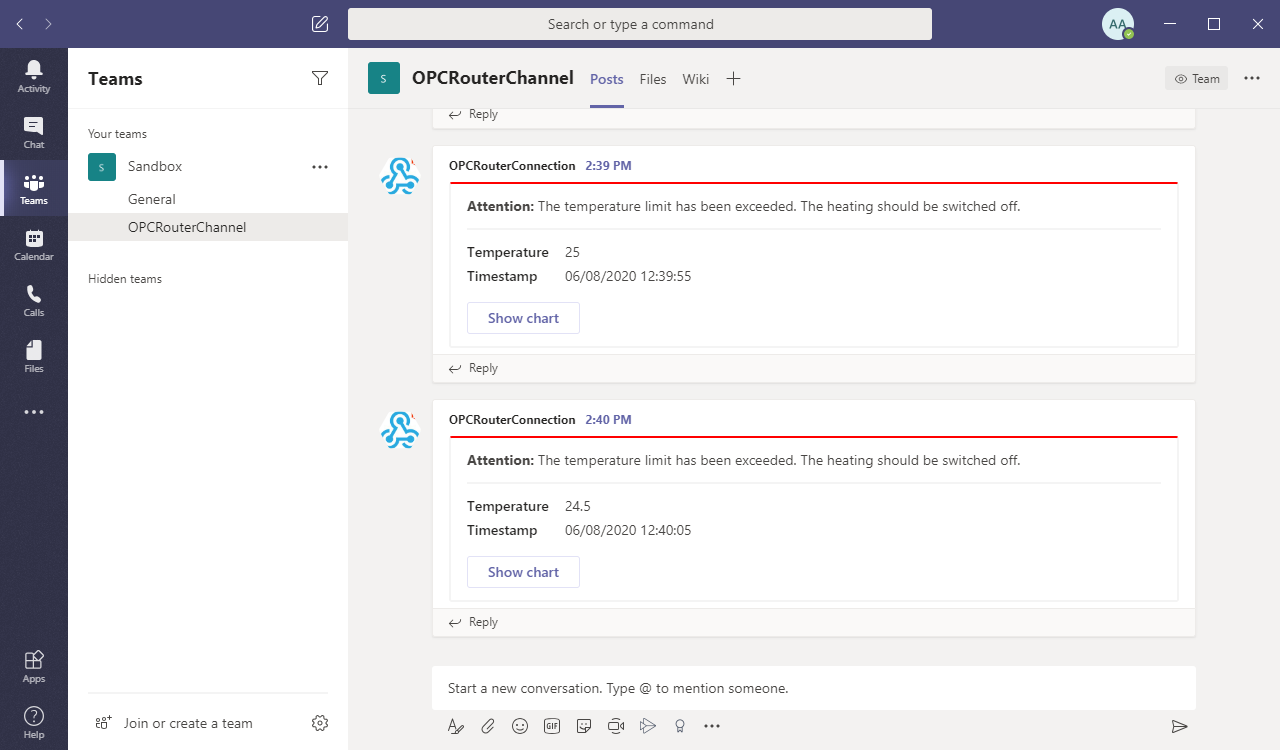 使用 OPC Router通過 REST 向 Microsoft Teams 發(fā)送消息 - 分步手冊