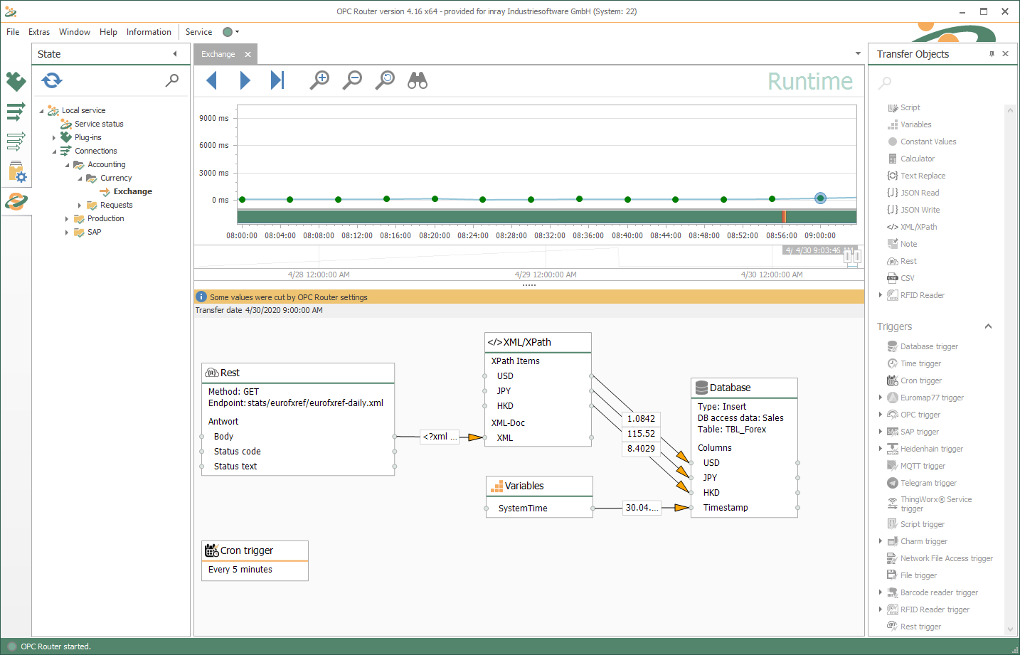 XPath 插件沒有自己的觸發(fā)功能,但使用 OPC Router中可用的觸發(fā)功能。