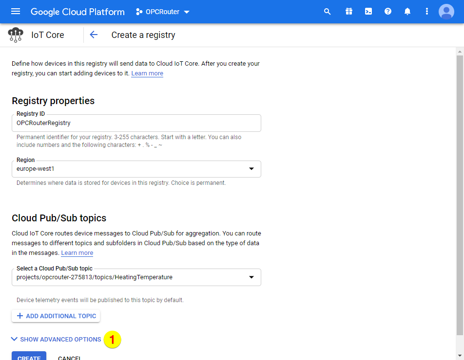 Cloud Profile 使您可以更輕松地為 MQTT 連接輸入 Google 特定的連接數據。