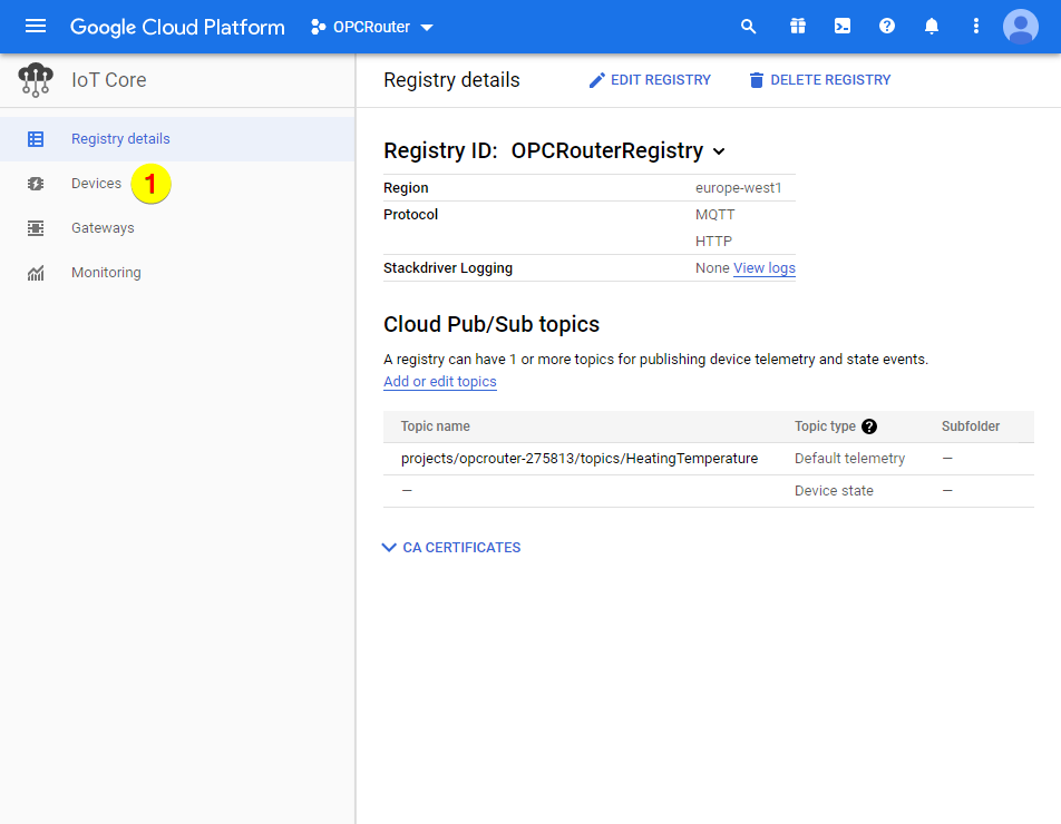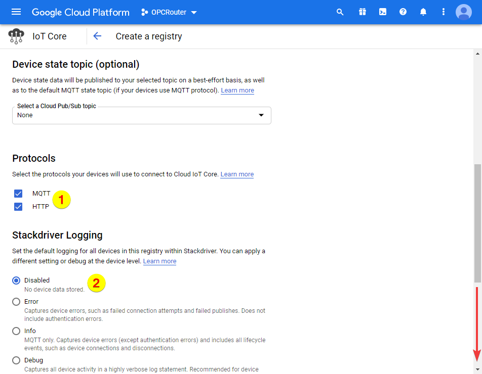 19. 允許設備通信(1),使用注冊表的默認設置“Stackdriver Logging”(2),也許你必須向下滾動: