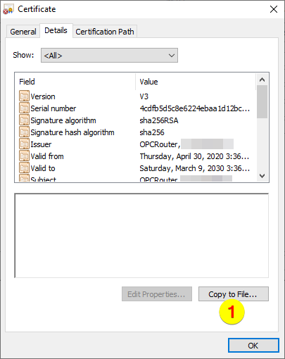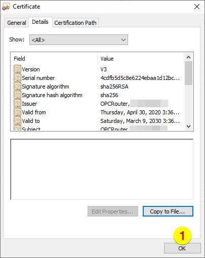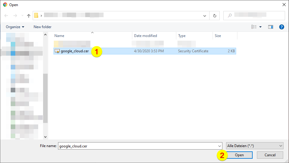 20. 選擇證書 (1) 并單擊打開按鈕 (2):
