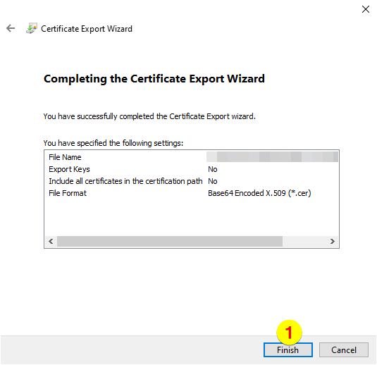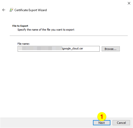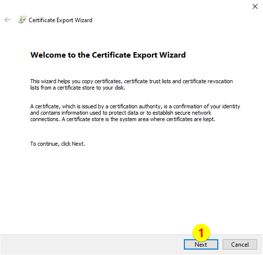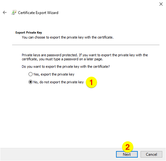 9. 不應導出私鑰 (1),然后單擊下一步按鈕 (2):