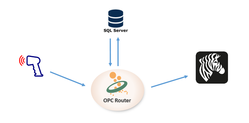 通過使用OPC Router軟件,生產(chǎn)開始時,從SQL Server系統(tǒng)中獲取生產(chǎn)作業(yè)計劃數(shù)據(jù)信息,包含生產(chǎn)時間、生產(chǎn)批次、批次信息、產(chǎn)線、生產(chǎn)部件類型,物料號等等,生產(chǎn)過程中數(shù)據(jù)信息能及時回傳到SQL Server系統(tǒng)中,包括成品掃碼時間,條形編碼等信息。