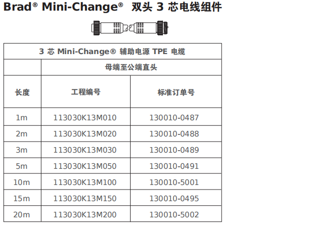 Brad? Mini-Change? 7/8" 輔助電源基礎設施組件,即插即用的 3 芯配電基礎設施可通過 7/8" 標準接頭來實現(xiàn) IP67 設備的互連,也稱為 Mini-Change?。